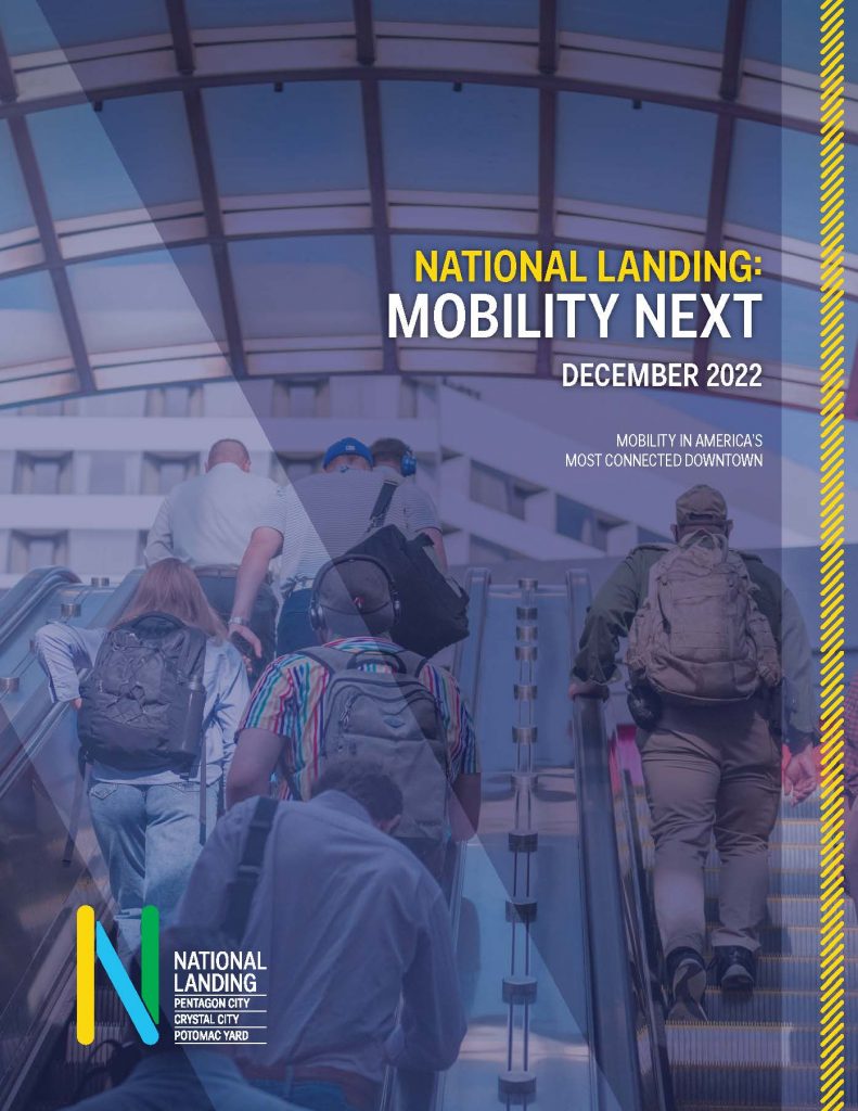 The National Landing Business Improvement District (BID) envisions National Landing as a downtown linked seamlessly to the region and acts as a champion for enhanced connectivity and reclaiming streets for people, walkability and multiple modes. This Mobility Next report offers an update to the January 2021 Mobility Next Report, and showcases how National Landing’s most transformative mobility projects have progressed, advancing our collective vision of becoming America’s most connected downtown.